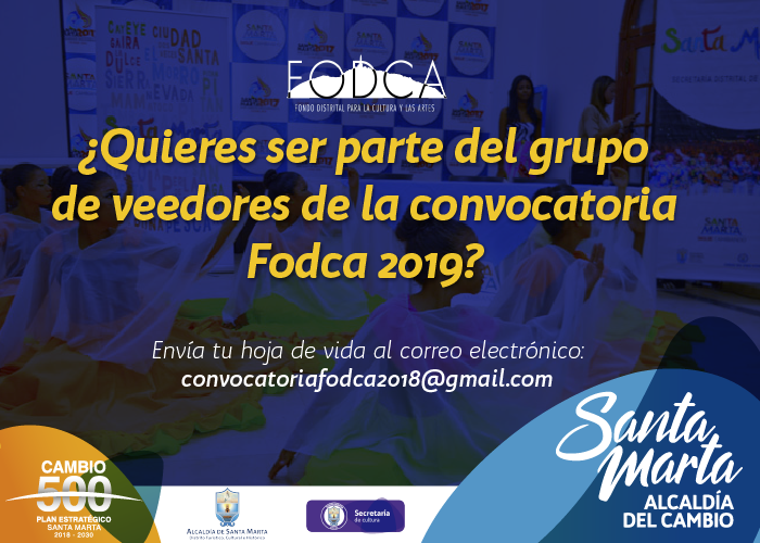 ·En aras de fortalecer el proceso de transparencia del FODCA (Fondo Distrital para la cultura y las artes)- te invitamos a postularte como representante del grupo de veedores del proceso de evaluación de la convocatoria FODCA 2019.