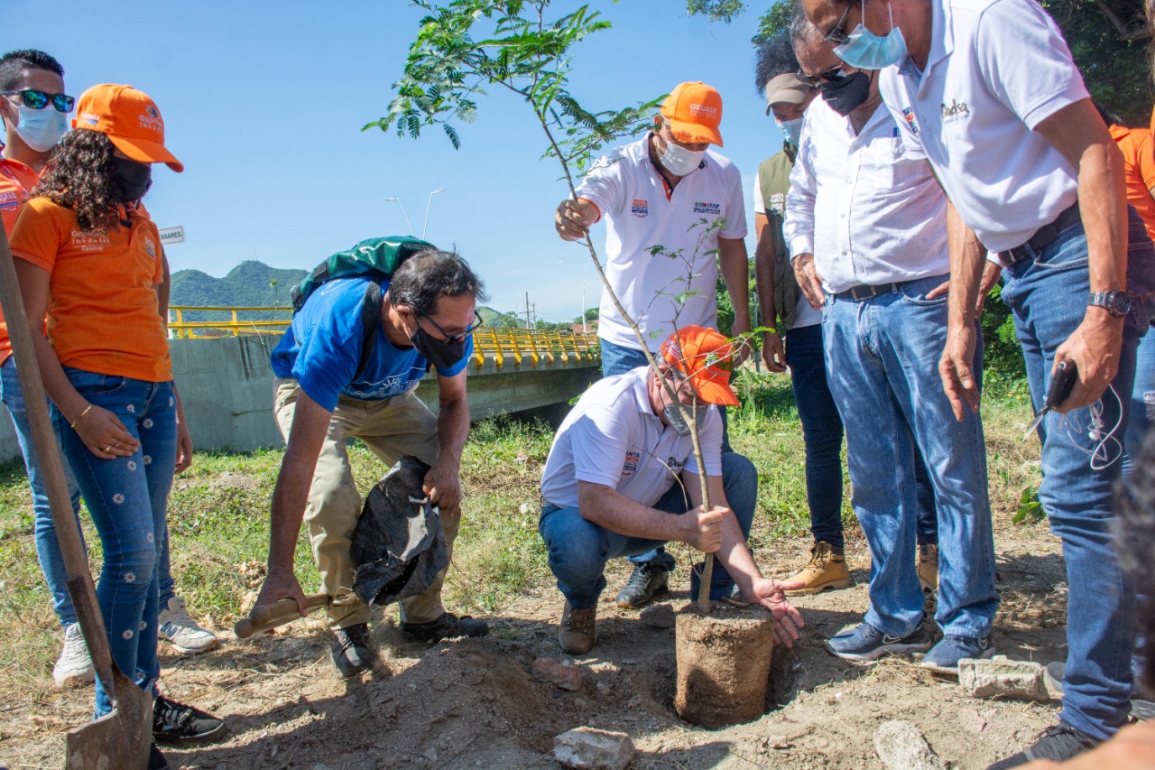 500 árboles fueron sembrados en el nuevo puente del ‘Minuto de Dios’ y 500 más en los alrededores del estadio Sierra Nevada, para un total de 1000 individuos arbóreos plantados durante esta exitosa jornada que inició a las 8 de la mañana y tenía como finalidad avanzar en el propósito de reducir los focos de calor del Distrito, mitigar el cambio climático, mejorar la calidad del aire y aumentar la cifra cercana a los 15.673 árboles sembrados en el Distrito a través de campañas como ‘Santa Marta Siembra’ y ‘Essmar Siembra’.