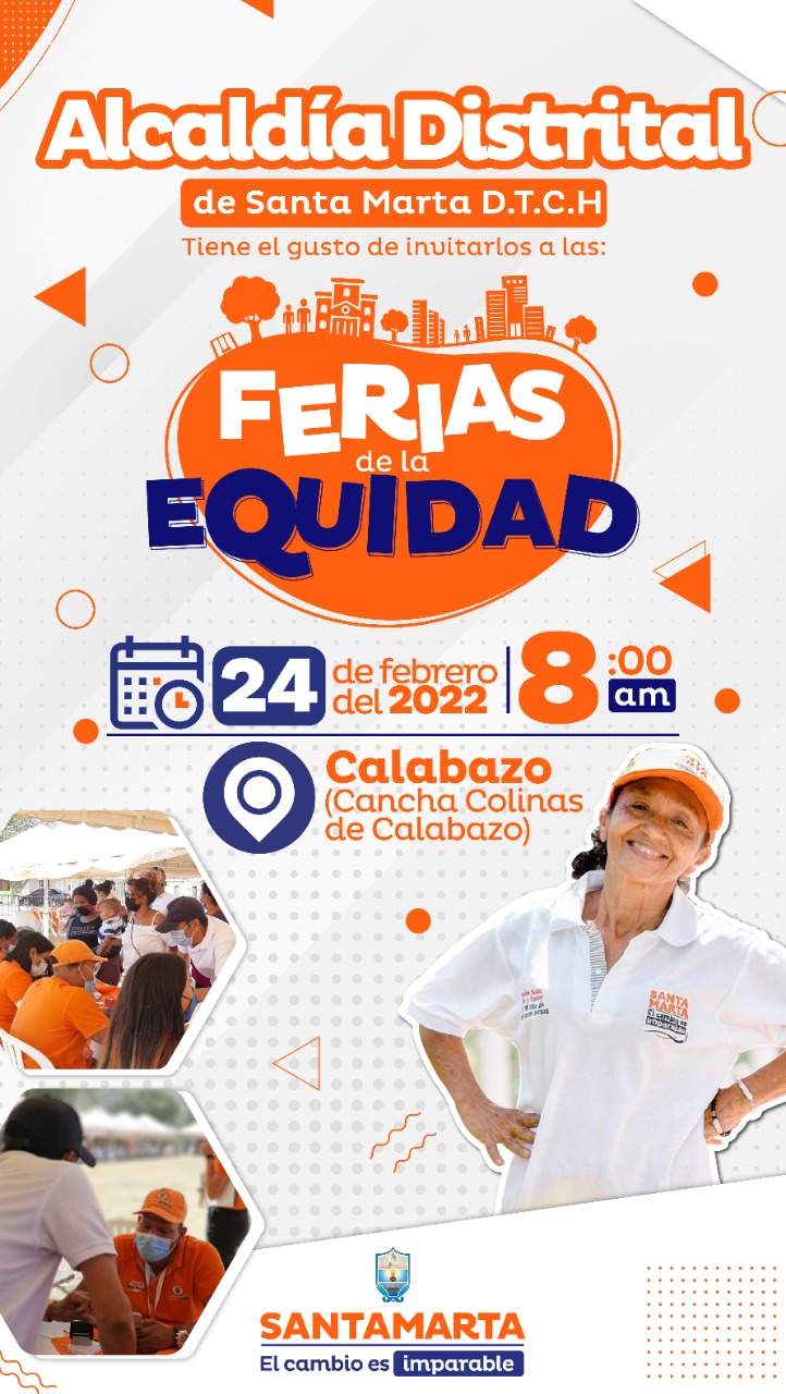 Las Ferias de la Equidad, creadas por el hoy gobernador Carlos Caicedo, continúan de manera exitosa con la alcaldesa Virna Johnson, para ofrecer en las comunidades samarias el portafolio de servicios institucionales de la Alcaldía de Santa Marta, cumpliendo con el objetivo de los Gobiernos del Cambio, de facilitar a los ciudadanos el acceso a más de 140 programas que se ofertan de manera gratuita, fortaleciendo el buen vivir, la participación ciudadana y los derechos de las familias vulnerables.