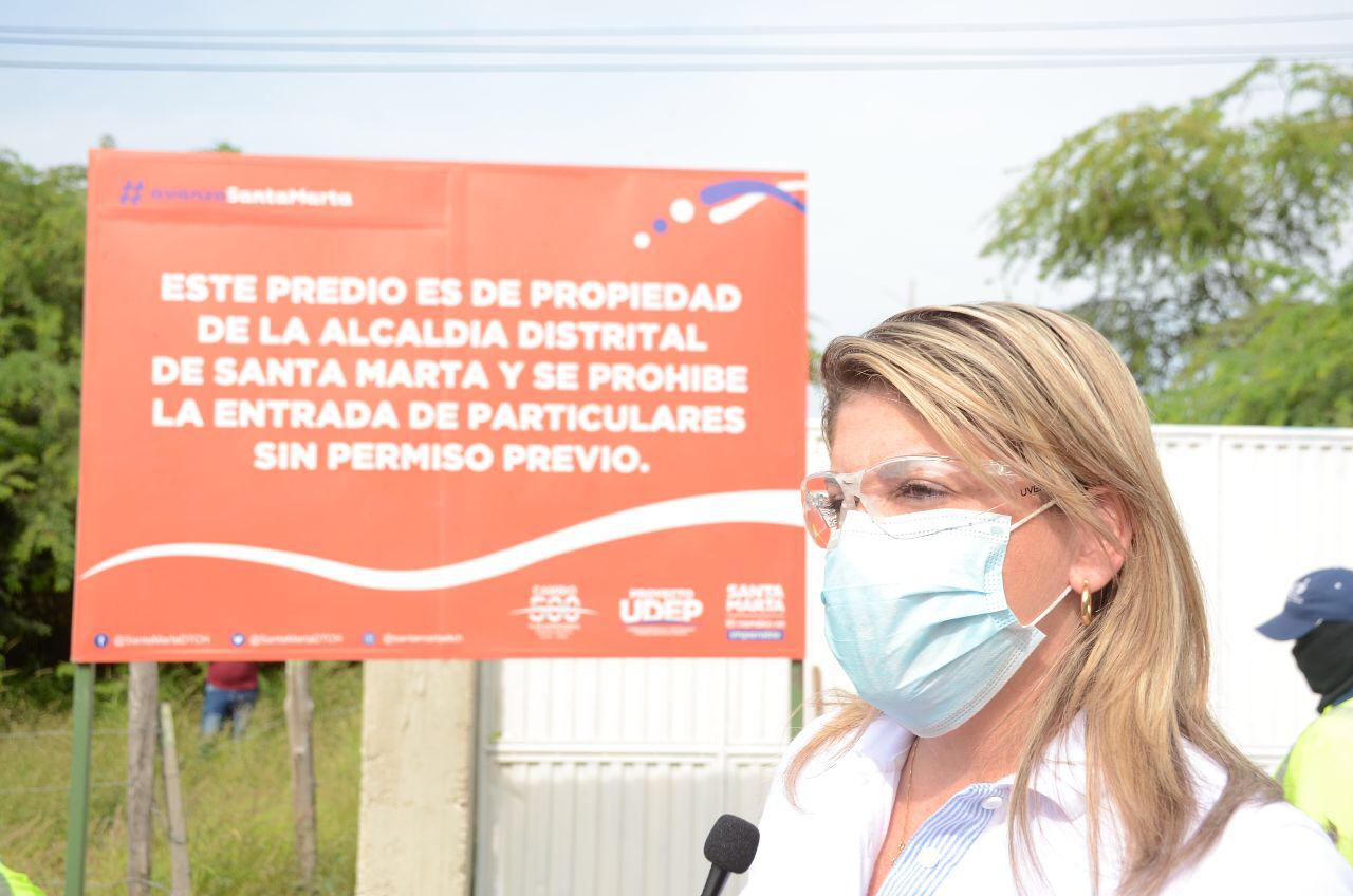 “Estamos aquí haciendo nuevamente posesión de este predio. Es un proceso que comenzó el exalcalde Rafael Martínez, y aquí nuevamente venimos a tomar posesión para ratificar la propiedad del Distrito. Es un predio que ha estado en litigio con la sociedad Cerro Blanco, y el Consejo de Estado falló a nuestro favor, a favor del Distrito de Santa Marta. Venimos nuevamente a colocar la valla, una valla que en su momento colocó el exalcalde Rafael Martínez y que personas particulares la derrumbaron, estamos aquí nuevamente colocándolas y estaremos muy pendientes, estaremos vigilantes para que se respete la propiedad pública”, manifestó la mandataria de los samarios.