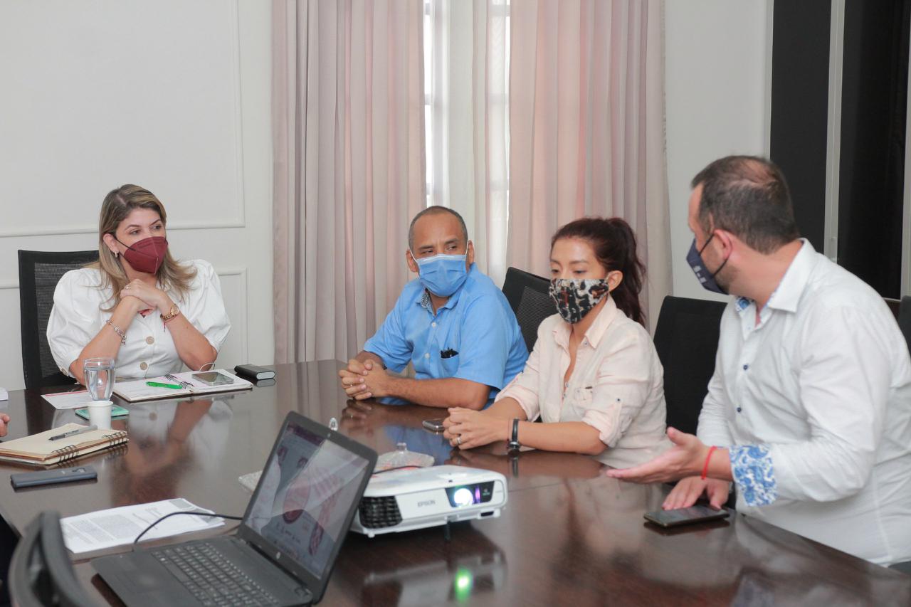 El secretario de Desarrollo Económico Distrital, Iván Calderón y, la directora de Indetur, Laura Agudelo, acompañaron a la alcaldesa Virna Johnson en la reunión con el presidente nacional de Acodres, Guillermo Gómez y la directora de Acodres Magdalena, Paola Narváez.
