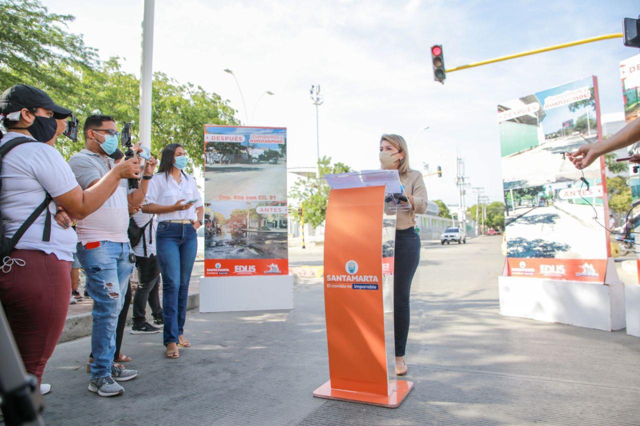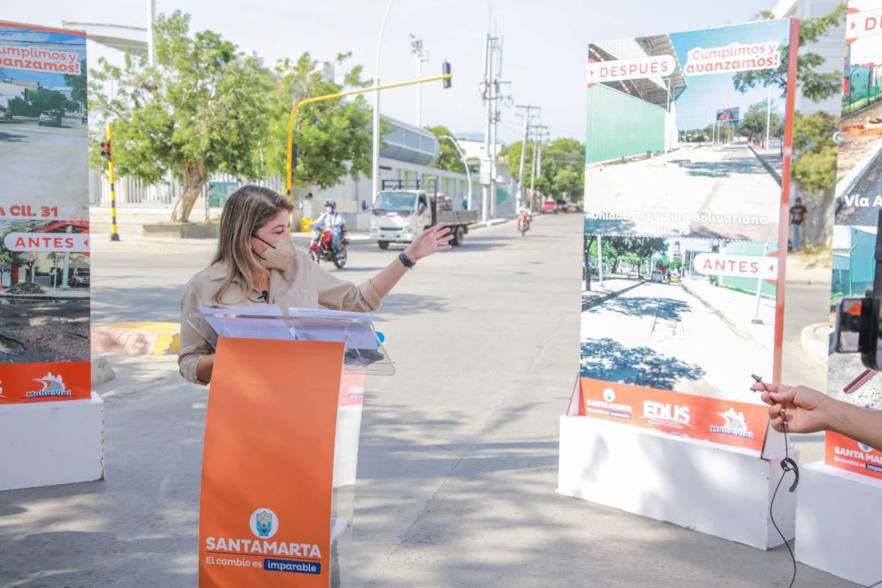 Durante la visita a uno de los tramos intervenidos en la primera fase, la alcaldesa Virna Johnson manifestó que: “Continuáremos la reposición de placas para acabar con los huecos, modernizar la malla vial de la ciudad y reactivar nuestra economía con la generación de más de 2,000 empleos, incluyendo mano de obra local, madres cabeza de familia y jóvenes para garantizarles oportunidades y un mejor futuro”.
