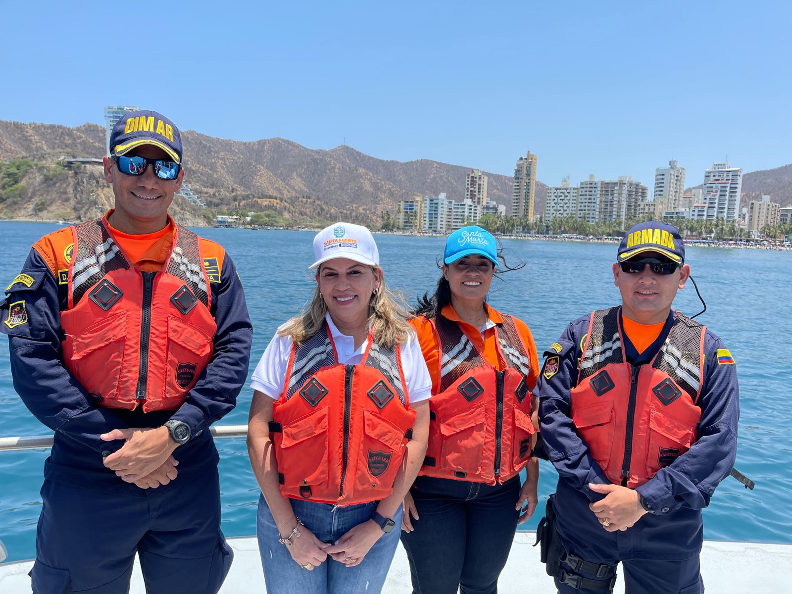 De esta forma, la mandataria distrital, en compañía del capitán de corbeta, Diego Salguero Londoño, de la Capitanía de Puerto de Santa Marta y el capitán de Corbeta Mario Rodríguez Muñoz, comandante de la Estación de Guardacostas, inspeccionaron las acciones interinstitucionales desplegadas desde el Distrito junto con autoridades civiles, policivas y gremios en los balnearios de la ciudad para garantizar el bienestar de los 170 mil turistas, que se proyectan arriben a la ciudad.