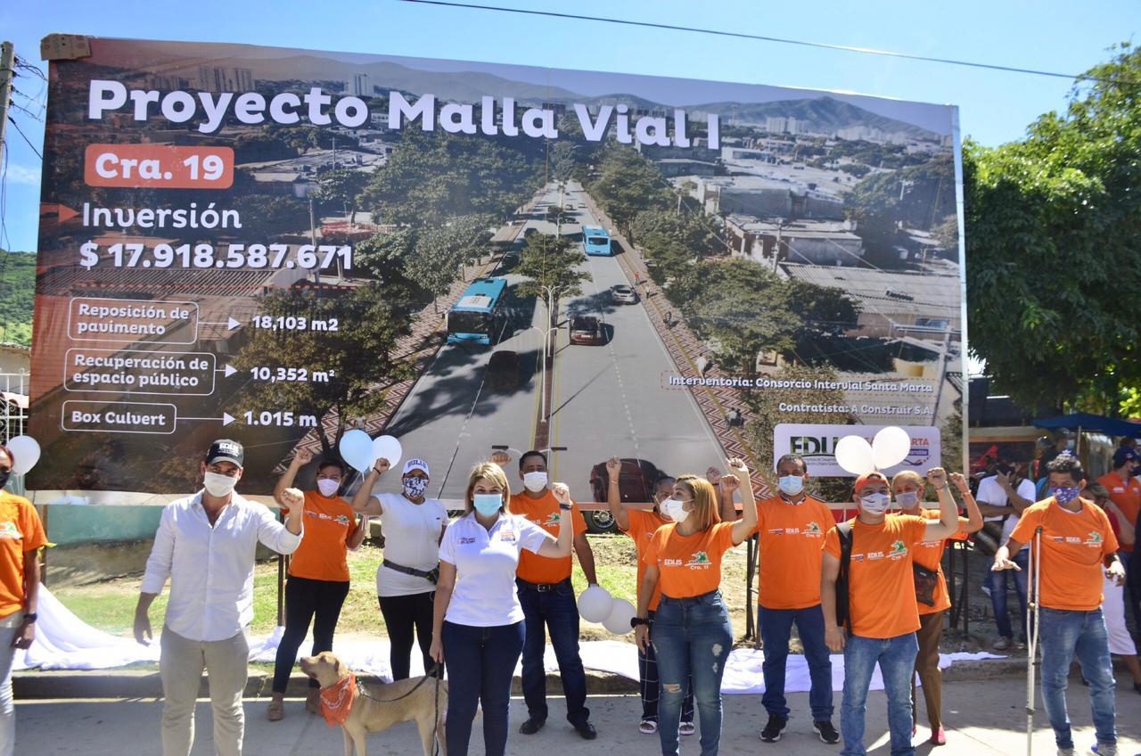 El proyecto de Malla Vial comprende la intervención de la carrera 19 entre la avenida del Libertador y la Vía Alterna; el anillo vial de El Pando, entre las calles 30 y 38 y carreras 18 y 19; la vía principal de El Oasis; la calle 9 entre Vía Alterna, desde Juan XXIII hasta el barrio Divino Niño en la carrera 58; la carrera 35 entre Vía Alterna y calle 9 en Bastidas y la calle 6 con carrera 10 de Gaira.