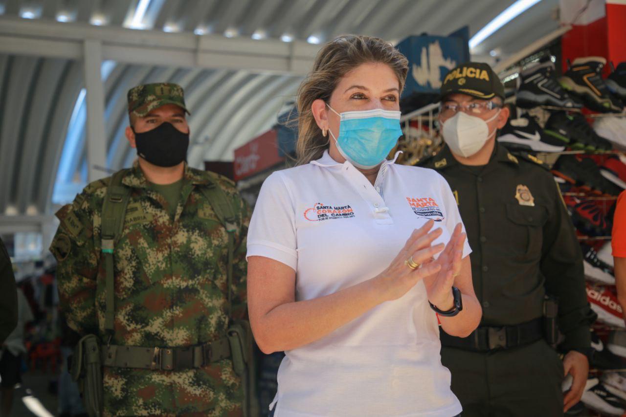 La mandataria de los samarios anunció que en la plaza de mercado habrá una oficina del Gaula de la Policía y Militar de manera permanente para atender cada uno de los requerimientos e inquietudes que tenga el gremio de comerciantes.