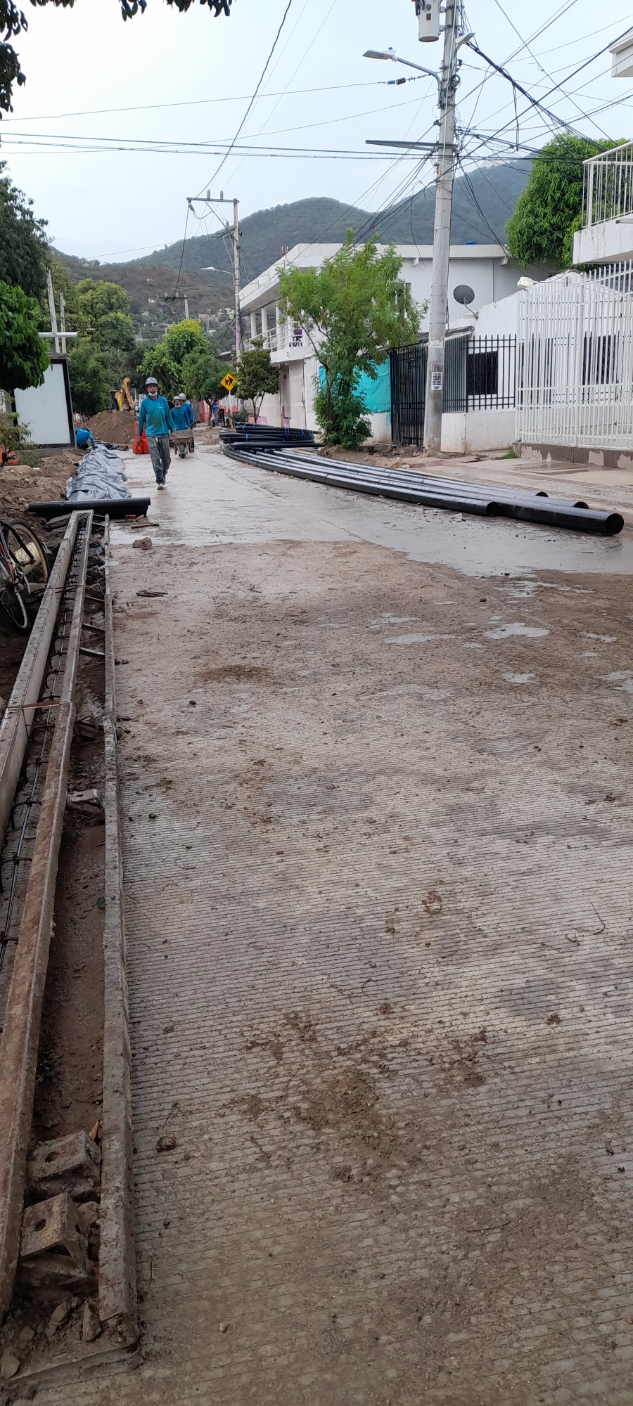 Con la adecuación del terreno para la fundida de las losas de concreto hidráulico, la Alcaldía Distrital, a través de la Empresa de Desarrollo y Renovación Urbano Sostenible de Santa Marta, EDUS, avanza en la construcción de la nueva estructura de pavimentos en la carrera 19, entre las calles 30 y 35 del barrio El Pando.