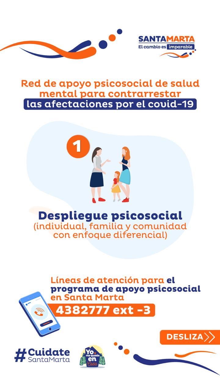 Conscientes del impacto de la pandemia sobre la salud mental de las personas, la Alcaldía Distrital de Santa Marta lideró la creación de la Red Estratégica para el Apoyo Psicosocial, a través de la cual velará por la atención, acompañamiento y seguimiento de casos para todos los samarios que los requieran.
