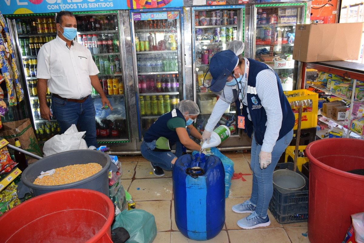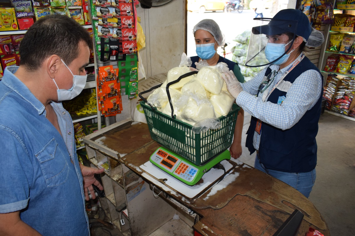 Adriana Monroy, referente del Programa de Alimentos y Bebidas, detalla que una vez “Realizadas las visitas en tres de los establecimientos de expendio de alimento y bebidas señalados, evidencian la comercialización de estos productos a granel a lo que proceden a la aplicación de la medida sanitaria de seguridad consistente en la desnaturalización y retiro de 54 kilos de leche en polvo y así mismo de 19 litros de aceite”.