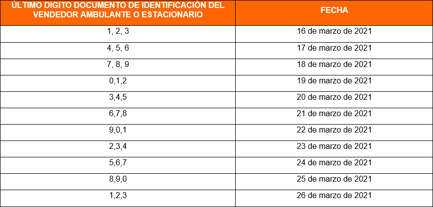 Con referencia al ‘pico y cédula’, también comienza a regir entre el 16 y el 26 de marzo, de acuerdo al último digito de la cédula de ciudadanía, documento de identidad y/o pasaporte de los ciudadanos de otras nacionalidades que deban realizar la adquisición y pagos de bienes y servicios en los establecimientos bancarios y financieros, notarias, curadurías, Oficina de Instrumentos Públicos, Registraduría del Estado Civil, supermercados, supertiendas, tiendas de cadenas, centros comerciales, Mercado Público, Secretaría de Movilidad Distrital y el SIETT, tal como se detalla a continuación:
