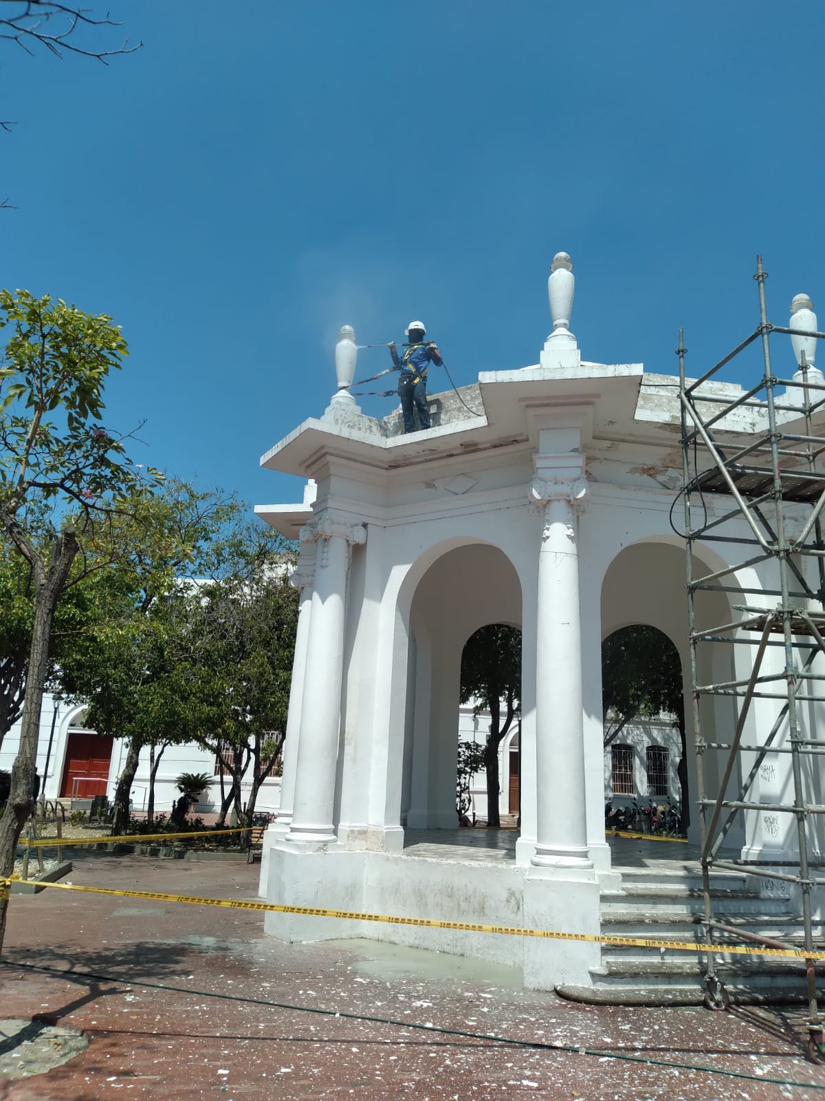 También se está trabajando en el resane de paletas y pintura del templete, el cual, durante las últimas semanas, ha sido objeto de la falta de cultura ciudadana por parte de un grupo de jóvenes que lo han rayado en varias ocasiones.