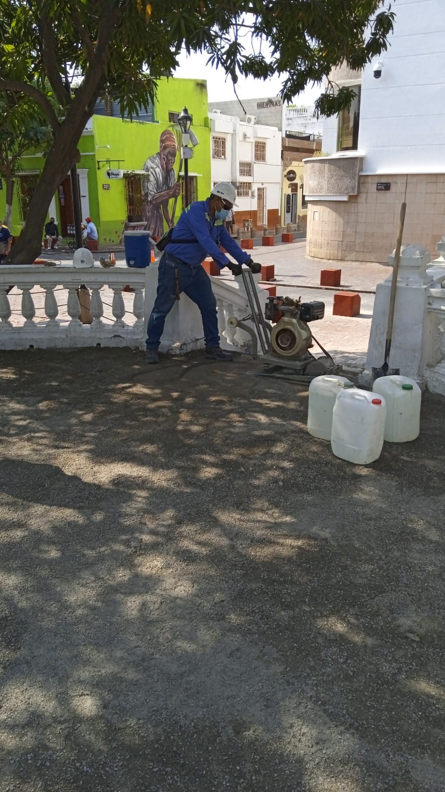 Continúan las jornadas de embellecimiento de plazas y parques en Santa Marta. Tal como lo dispuso la alcaldesa Virna Johnson, operarios de Amoblamiento Urbano y la Gerencia de Infraestructura trabajan en la recuperación de uno de los atractivos turísticos más visitados en el Centro Histórico: el parque de los Novios.
