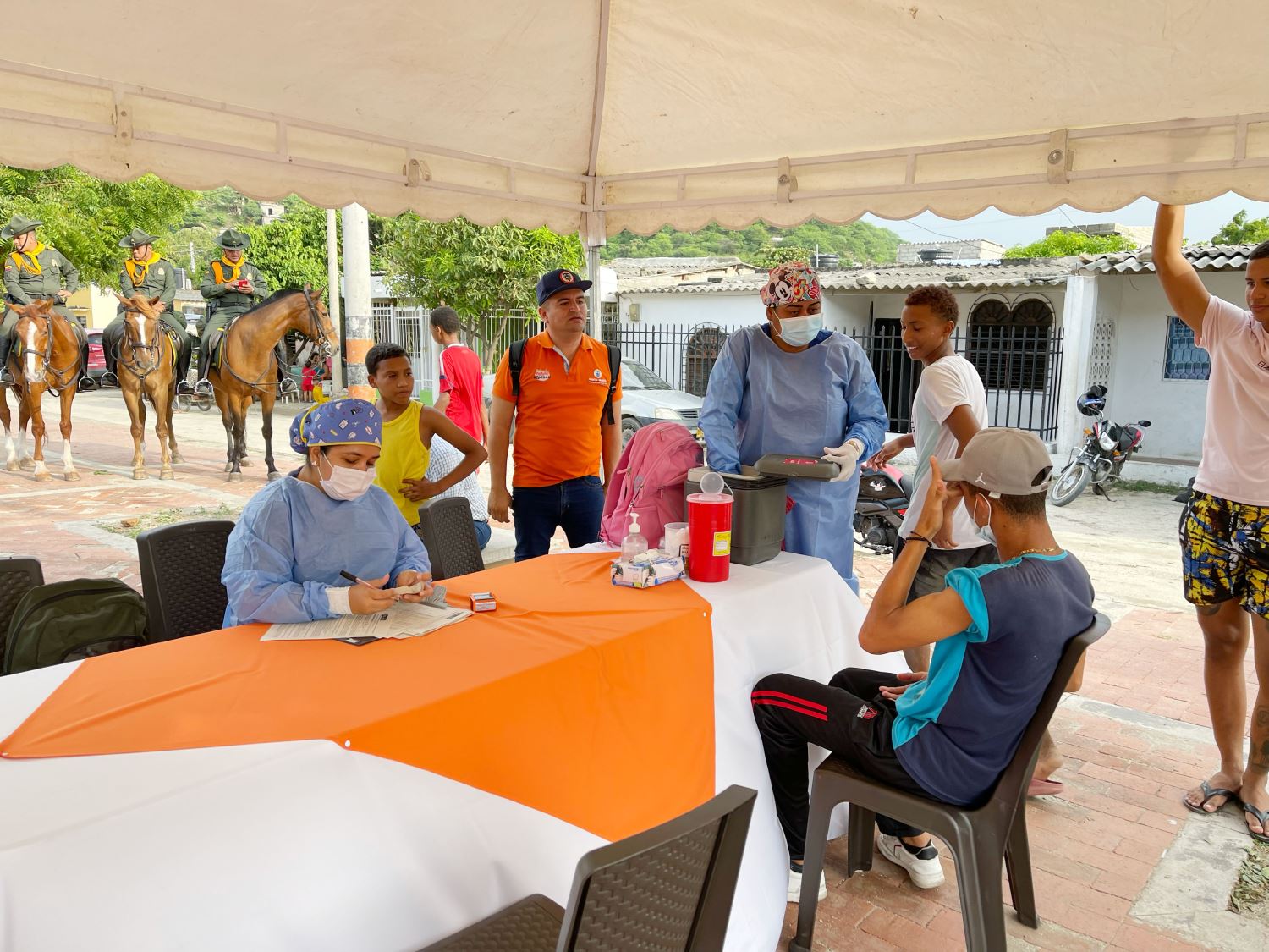 Personal de las Secretarías de Seguridad, de Promoción Social y de Salud, además de las diferentes especialidades de la Policía Nacional y el equipo jurídico de la universidad Sergio Arboleda, atendieron a aproximadamente unas 60 personas, a quienes facilitaron la atención en resolución de conflictos por medio de la Casa de Justicia; y aplicaron dosis de refuerzo contra la Covid-19.