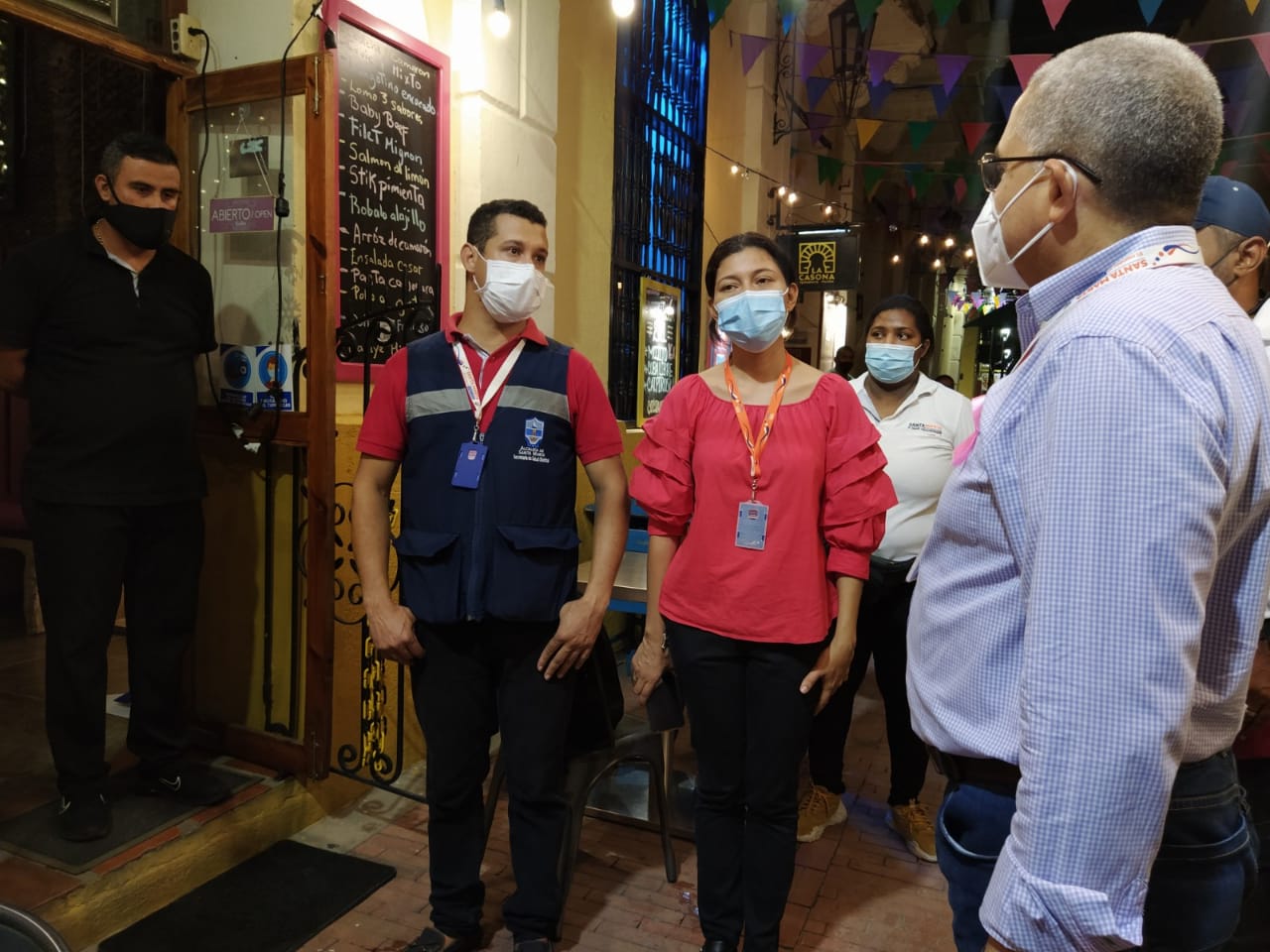 Los controles se adelantaron por la Alcaldía Distrital, a través de las Secretarías de Salud, Gobierno, Seguridad y Desarrollo Económico, durante la jornada de toma de muestra a los artesanos, comerciantes y demás actores del Centro Histórico de Santa Marta que lidera la Salud Distrital.
