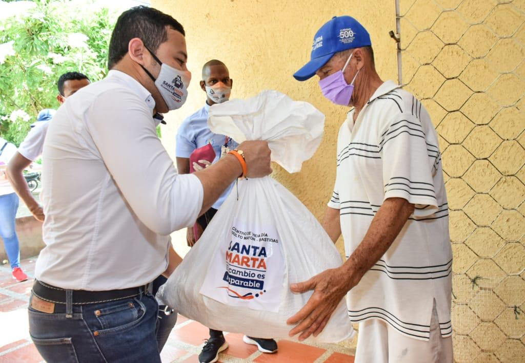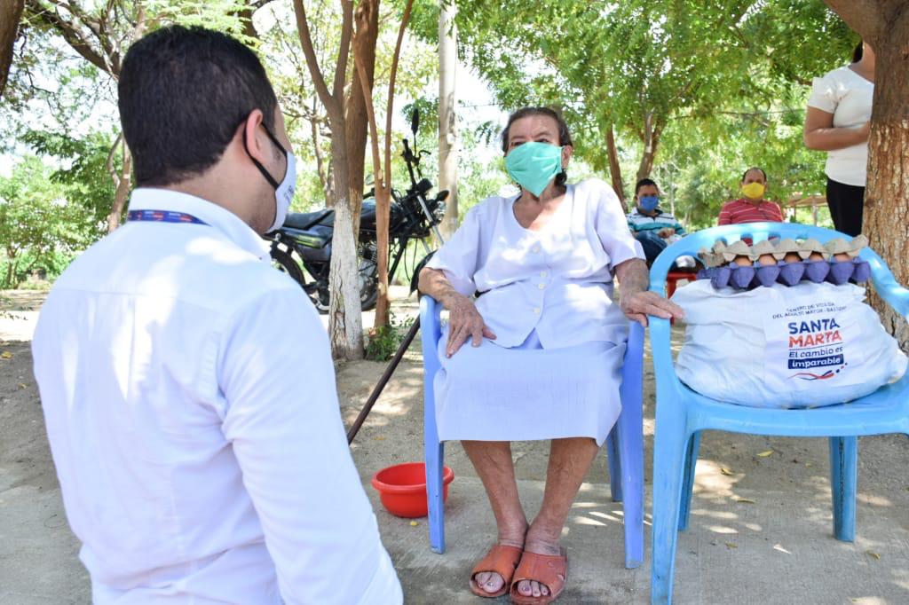 Por tal razón, la Alcaldía Distrital, a través de la Secretaría de Promoción Social, Inclusión y Equidad, entregó 150 mercados solidarios para los adultos mayores que residen en los barrios Santa Mónica, Luis R. Calvo, Divino Niño y Alto Delicias, los cuales, además de contener alimentos no perecederos, cuentan con kits de aseo y conforman un primer momento de la segunda fase de entregas por parte de la Alcaldía, que proyecta extender una mano solidaria a por lo menos 600 adultos mayores del Distrito de Santa Marta.