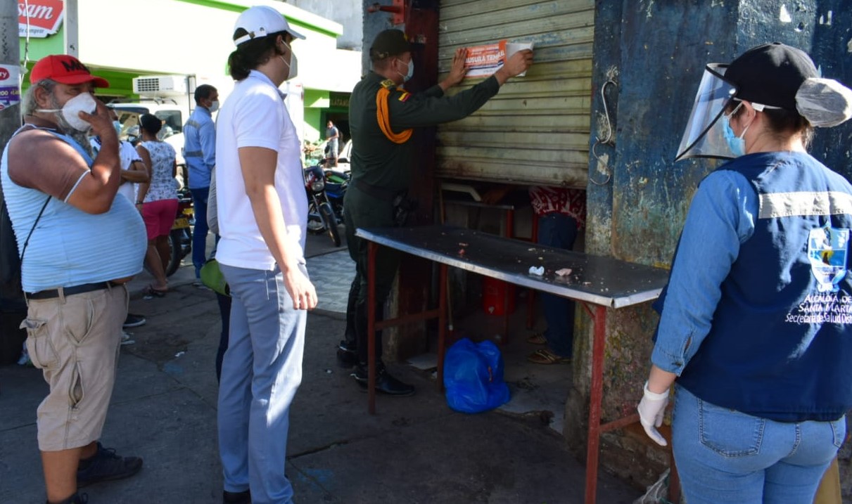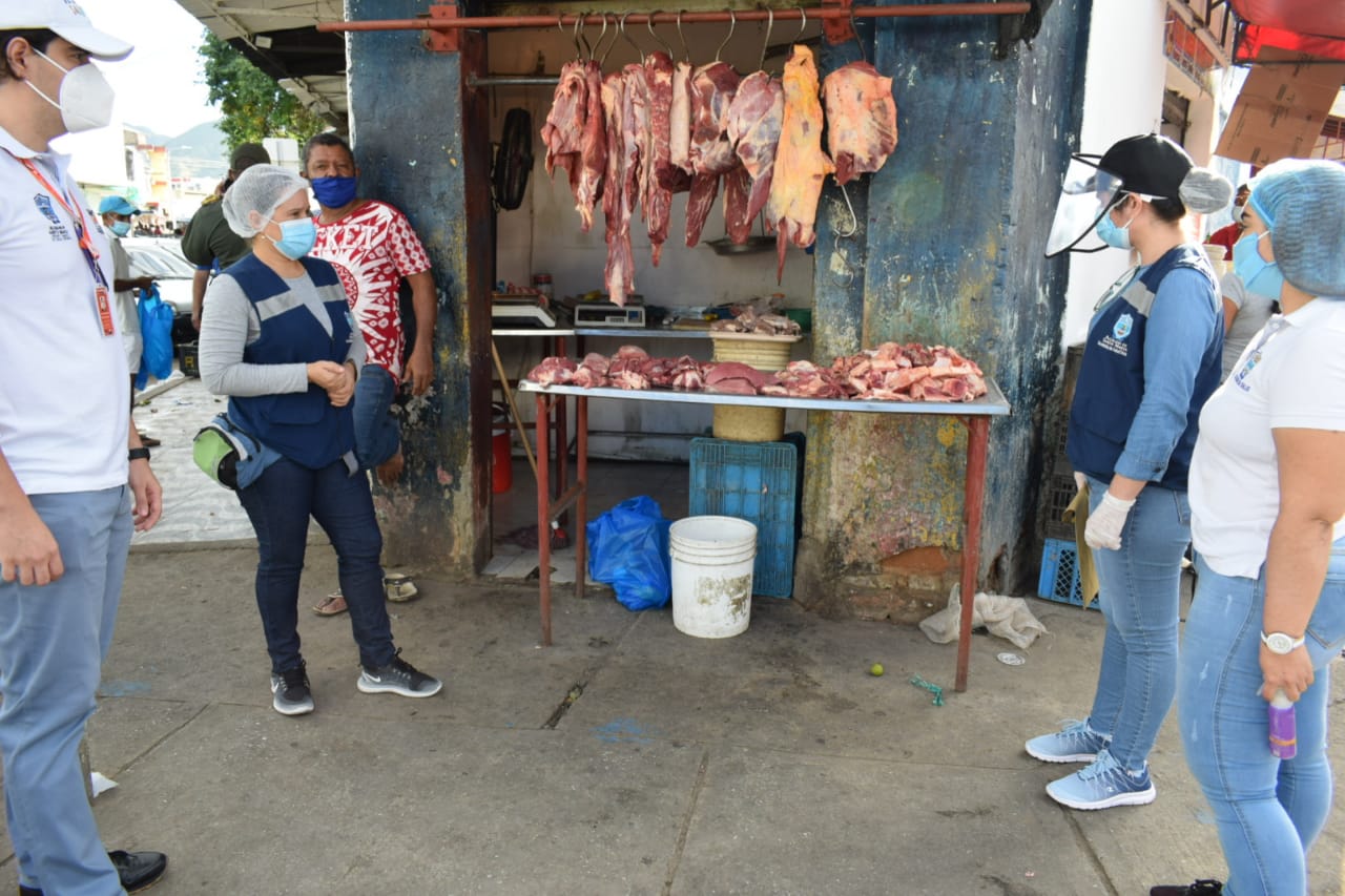La Dimensión de Seguridad Alimentaria y Nutricional de la Secretaría de Salud de Santa Marta, en articulación con el grupo de Carabineros y Guías Caninos de la Policía Metropolitana, realizó inspección, vigilancia y control a cuatros establecimientos de expendio de carne de la periferia de la plazoleta del mercado, plenamente focalizados, los cuales incumplen con la norma establecida por el INVIMA y el Ministerio de Salud y Protección Social.