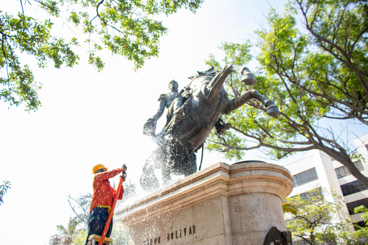 Alcaldía realiza jornada de limpieza de monumentos en el Parque Bolívar