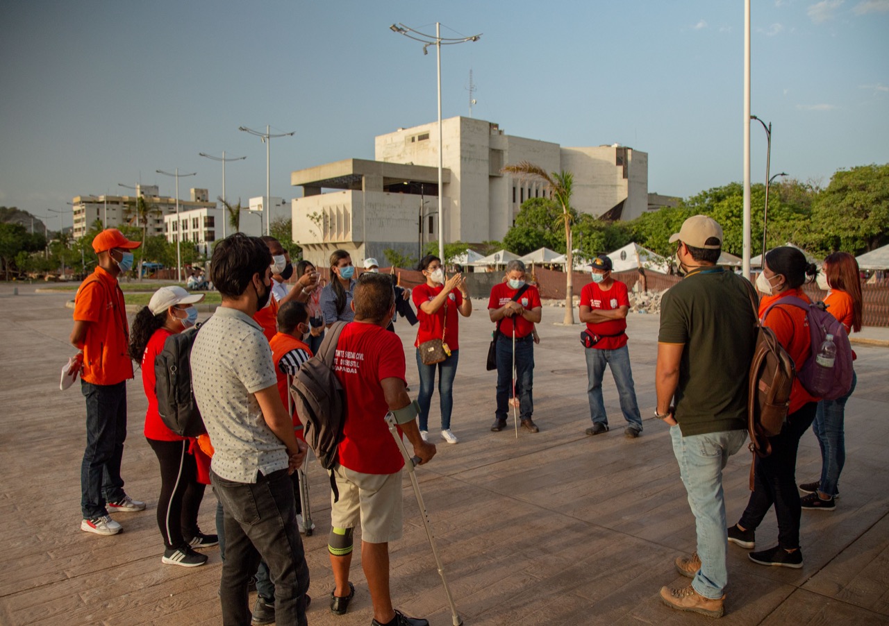 Los avances del proyecto de recuperación del Camellón de la Bahía fueron socializados ante los integrantes de la Veeduría Ciudadana del Centro Histórico y los representantes del Comité Distrital de Discapacidad, quienes recorrieron las obras ejecutadas por la Alcaldía Distrital, a través de la Empresa de Desarrollo y Renovación Urbano Sostenible, EDUS.
