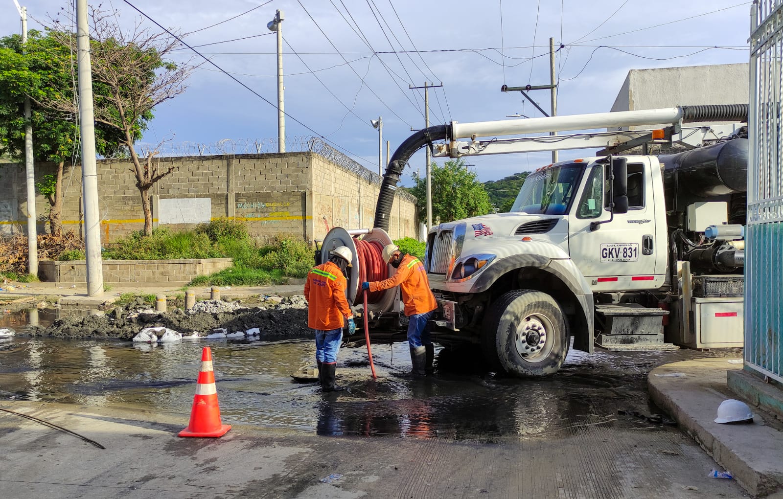 Las basuras y desechos arrojados de manera irresponsable en el sistema de alcantarillado ocasionaron la obstrucción del colector Libertador, a la altura del sector El Boro. Ante esta contingencia, la Alcaldía Distrital, a través de la Empresa de Servicios Públicos del Distrito de Santa Marta, Essmar, atendió y solucionó de manera inmediata la situación con la implementación de equipos de succión presión y labores de trasvase al colector Ferrocarril.
