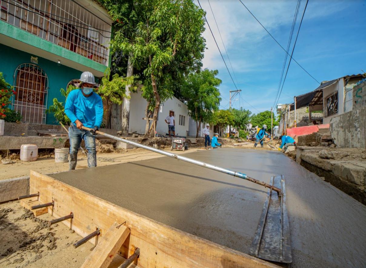 Con el vaciado de concreto avanzan las obras de pavimentación de la calle 14 de Gaira, una de las más importantes que lidera la Alcaldía Distrital con el fin de mejorar la movilidad y dignificar la vida de los samarios y residente del sector.