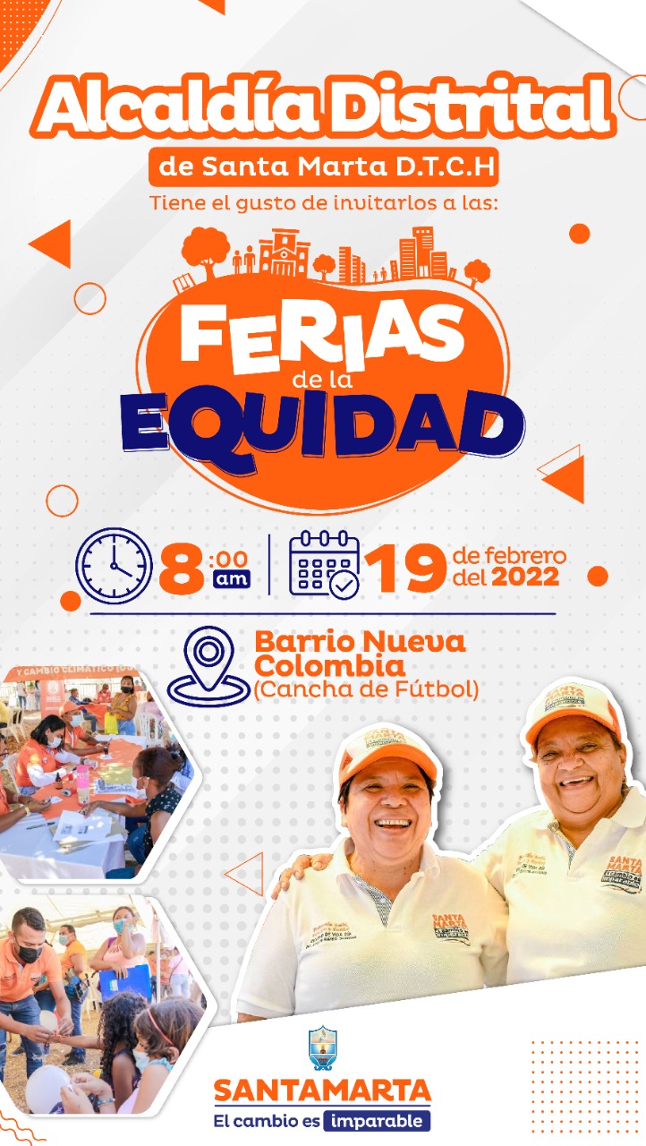 Durante lo corrido del año 2022, con las Ferias de la Equidad se han fortalecido los lazos entre la Alcaldía Distrital y las comunidades en sectores como: Cristo Rey, Los Cardonales, Cerro Tres Cruces, El Pando, Gaira, La Quinina 1 y 2, donde se ha afianzado el compromiso social beneficiando a miles de familias con este programa con el que Santa Marta vive el cambio.