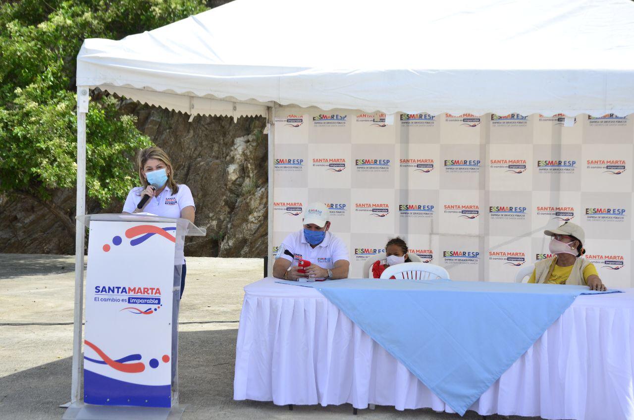 Durante el acto de entrega de los tres tanques que refuerzan la infraestructura del acueducto en Santa Marta, la Alcaldesa mencionó que entre tanto, avanzan otros proyectos como la construcción de la línea de conducción Sena-Troncal-La Lucha, la ampliación de la planta de El Roble y la planta de tratamiento de pozos; alternativas que incidan positivamente en la cantidad, en la continuidad y en la calidad del agua que debe ser suministrada de acuerdo a la demanda que se necesita en la ciudad.