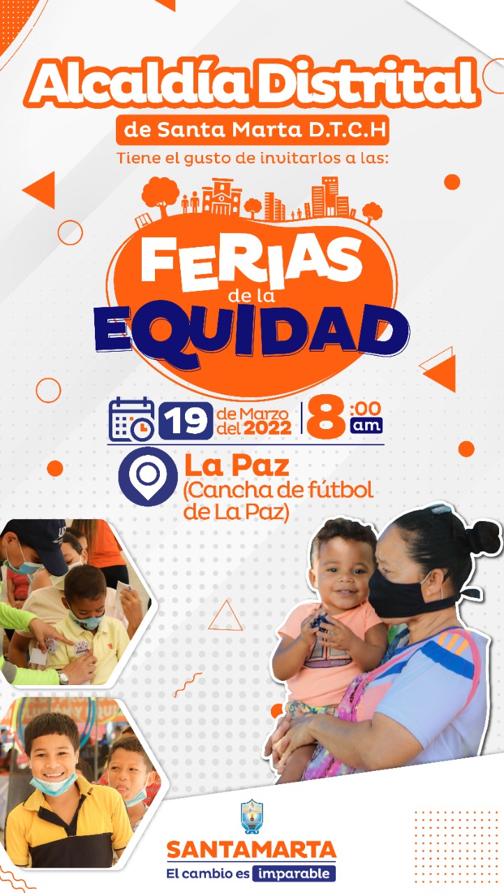 La oferta institucional en el año 2022 sigue cambiando y mejorando la calidad de vida de los samarios, la invitación es acceder a los servicios este sábado 19 de marzo, desde las 8 de la mañana en el barrio La Paz (Cancha de fútbol) los habitantes y sus alrededores, recibirán los servicios gratuitos que a través de la Feria de la Equidad presenta el Gobierno del Cambio Imparable, liderado por la alcaldesa Virna Johnson.