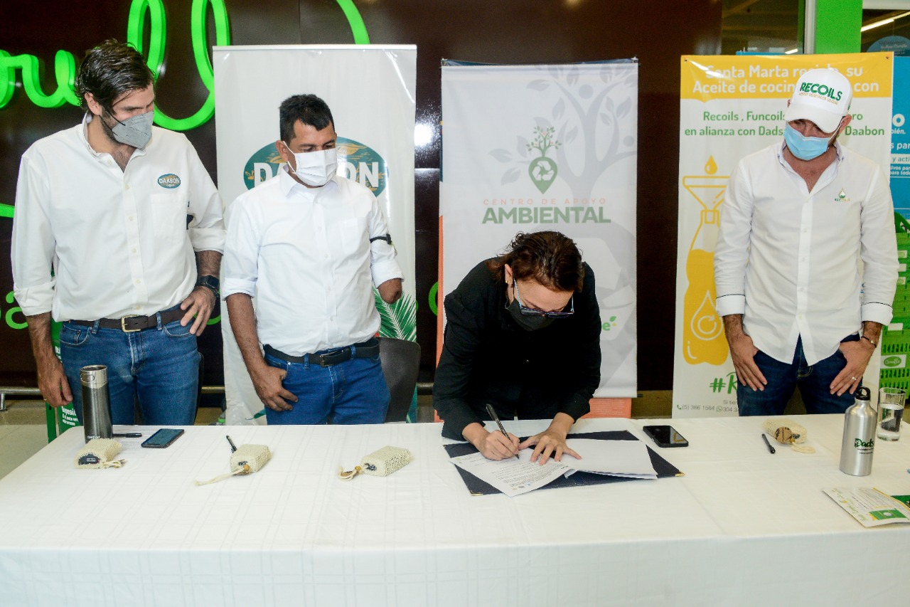 La alcaldía Distrital de Santa Marta, a través del Departamento Administrativo Distrital de Sostenibilidad Ambiental –Dadsa, firmó el Acta de Cooperación no. 001 de 2021 con C.I. Tequendama S.A.S; Basura Cero E.S.P. y Recoils S.A.S., con el fin de implementar estrategias de economía circular en torno a la disposición de aceites de cocina usado –ACU.