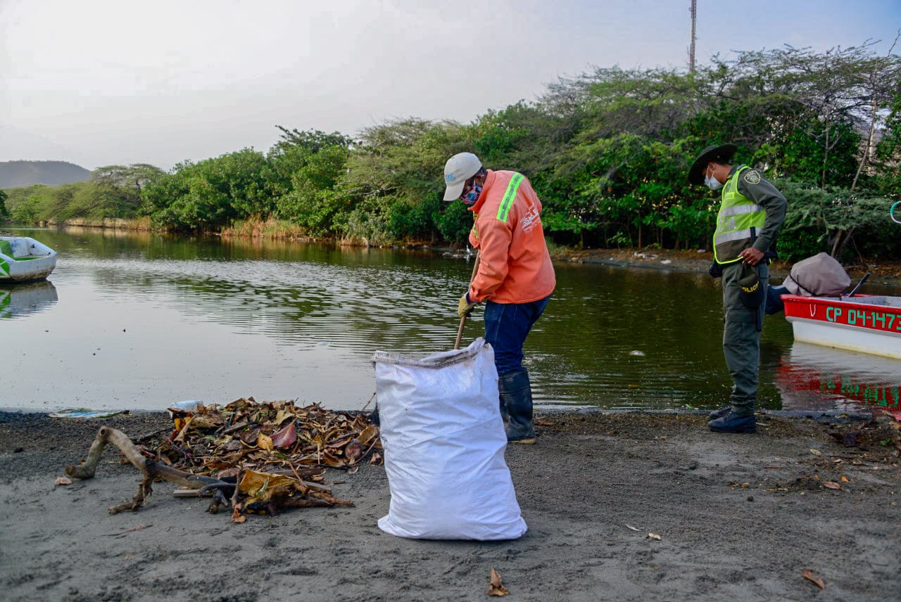 La jornada de limpieza y dragado se hizo para evitar desbordamientos en épocas de fuertes lluvias, impulsar el ciclo hídrico y oxigenar a los peces y al agua estancada del principal afluente de Santa Marta.
