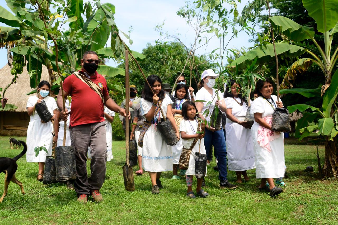 En esta oportunidad, el Dadsa y la comunidad indígena plantaron árboles de cedro, soleras, caracolí, mango, níspero, pera, mamón, Marañón, anón y torombolo.