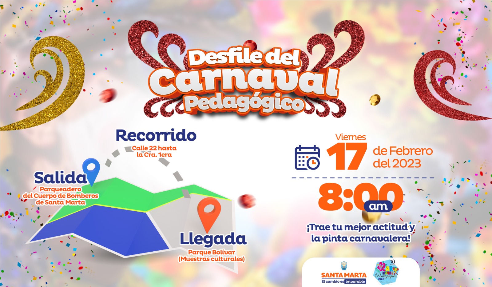 Como una manera de fomentar el arte, la cultura y las tradiciones de la ciudad, este viernes 17 de febrero se realizará el desfile folclórico del Carnaval Pedagógico 2023, una actividad coordinada entre la Alcaldía de Santa Marta, por medio de la Secretaría de Educación Distrital, las instituciones educativas y el comité organizador de este evento.
