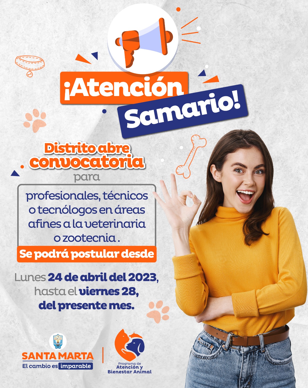 Con el fin de contar con un “Banco de hojas de vida” la Alcaldía de Santa Marta mantendrá abierta esta convocatoria desde el 24 hasta el viernes 28 de abril de 2023, para la contratación de tres médicos veterinarios y dos auxiliares.