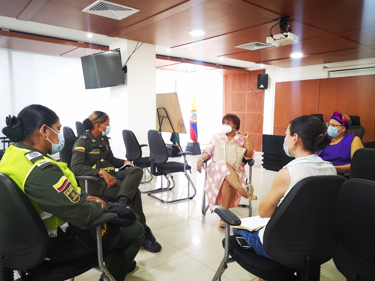 Así mismo, se realizó una reunión con Mileidis Yanes, representante de las organizaciones sociales de mujeres en la ciudad; Claudia Galvis, mujer agredida; la secretaria de la Mujer Distrital, Carlina Sánchez y uniformadas de la Policía Metropolitana de Santa Marta, en aras que las autoridades hagan lo que les corresponde y capturen al agresor.