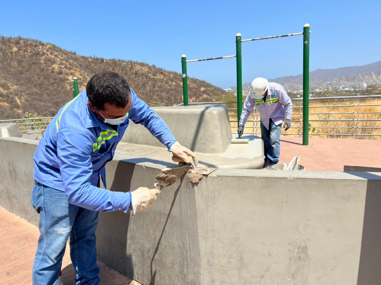 En esta ocasión se realizó una jornada de saneamiento y pintura en las estaciones ubicadas en el sendero peatonal, en donde samarios y turistas realizan ejercicios y disfrutan de la panorámica de la ciudad.