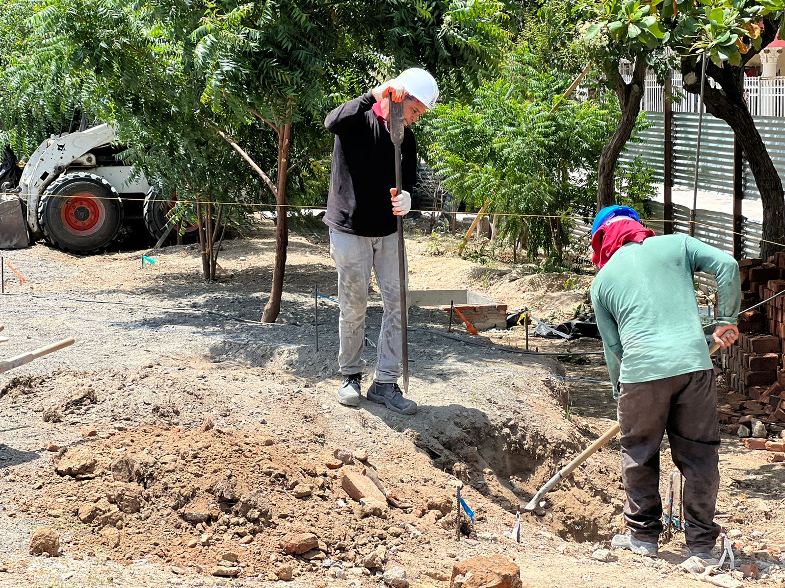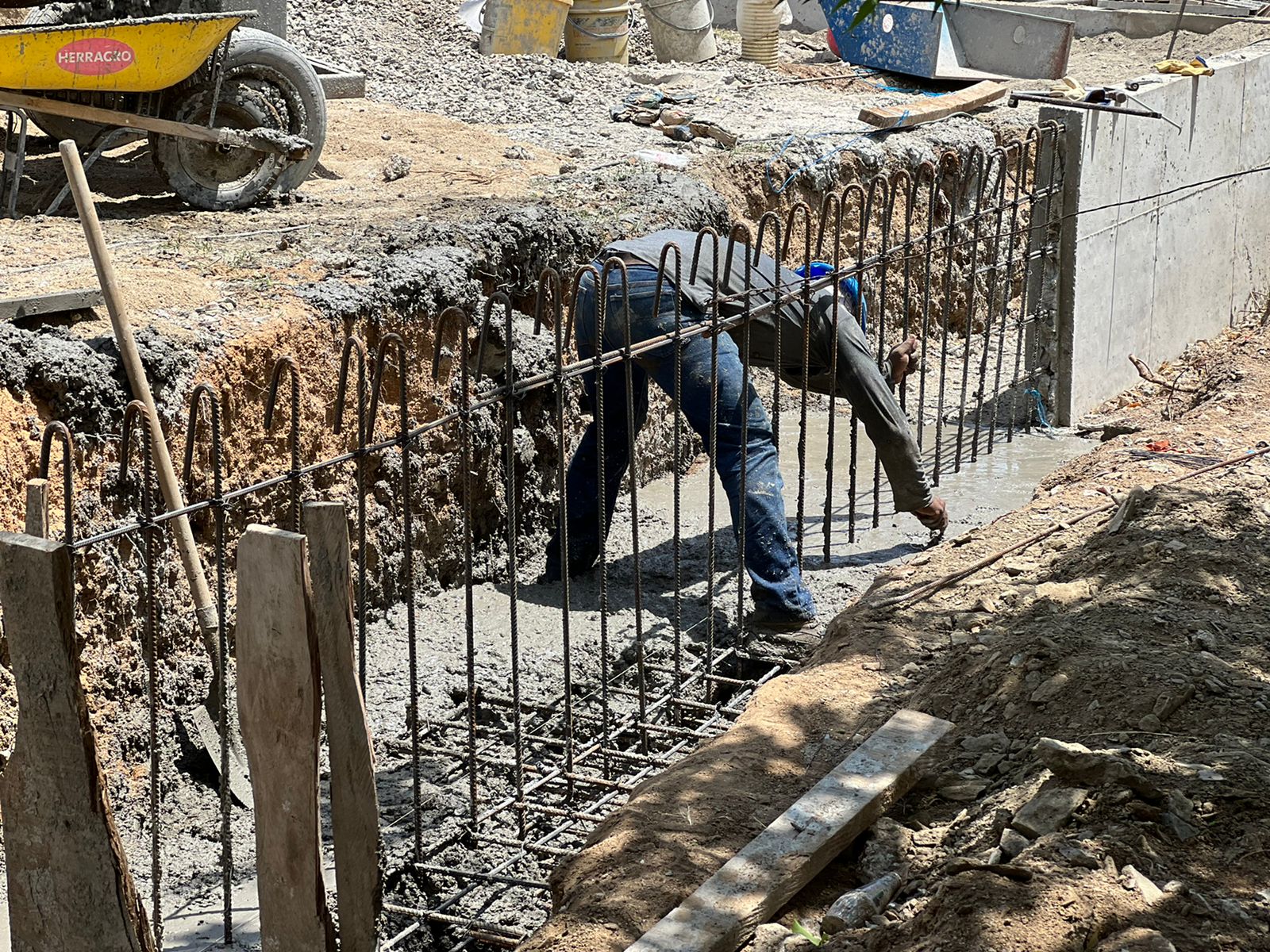 Durante el recorrido se corroboró la construcción de un muro interno; asimismo, se adelantan trabajos de excavación para el cerramiento de la cancha, el relleno de la jardinería lateral, el registro e instalación de la tubería eléctrica y el levantamiento de un muro perimetral que une la calle 36 con carrera 14, el cual permitirá mitigar el impacto de las inundaciones durante la temporada de lluvias en el sector.