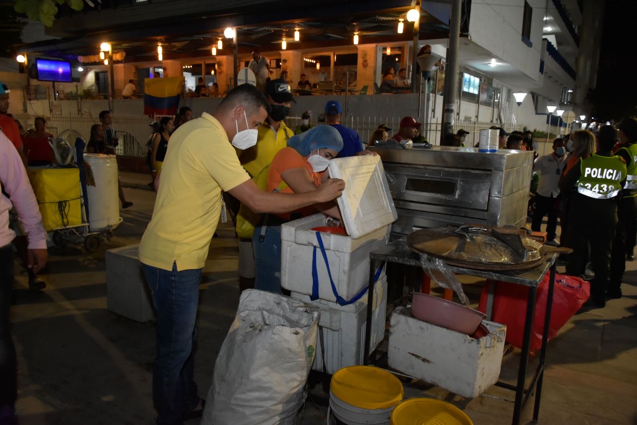 Por otra parte, el equipo del Programa de Alimentos y Bebidas, de la Secretaría de Salud, inspeccionó las normas de salubridad de los vendedores ambulantes de comida que hay en El Rodadero, mientras que la UDEP decomisó dos carros de comida rápida por ubicarse en una zona indebida.