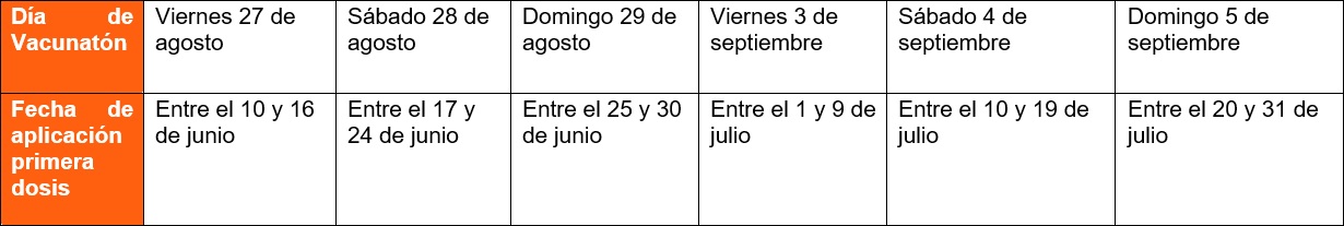 Para una mayor organización, y teniendo en cuenta que es una población grande la que está pendiente de la segunda aplicación de la vacuna, la jornada se va a realizar de acuerdo con la fecha de aplicación del primer biológico, de la siguiente manera: