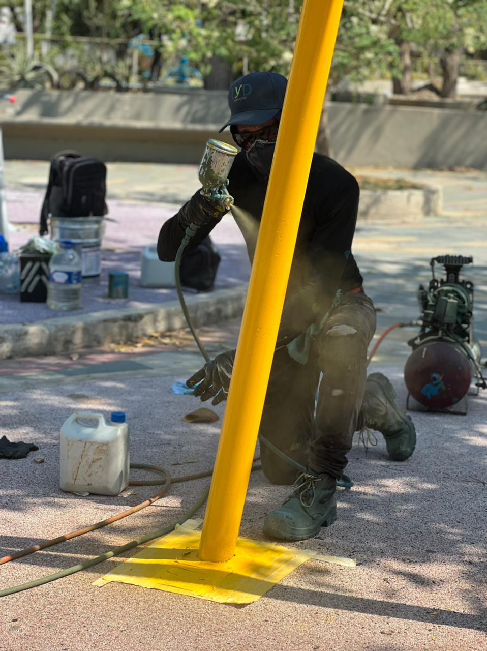 Los trabajos consistieron en la adecuación y pintura de las máquinas biosaludables que utilizan los samarios para los ejercicios. De igual forma, se cambiaron los pisos que estaban desgastados por el uso.