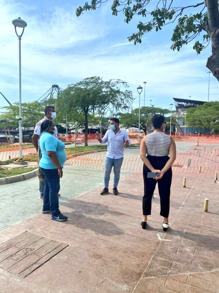 Ante los integrantes de la Comisión Primera de Presupuesto de la Localidad Dos de la ciudad de Santa Marta, la Alcaldía Distrital, a través de la Empresa de Desarrollo y Renovación Urbano Sostenible, EDUS, socializó los avances de la plazoleta de jugos que se construye en el Camellón de la Bahía, donde se reubicarán los vendedores de la calle 16.