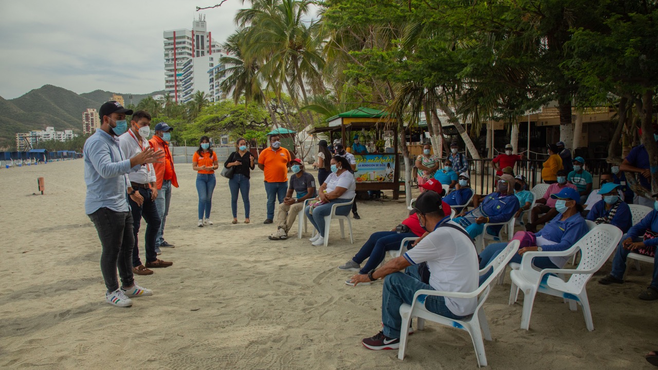 La importancia, los avances y el cronograma de obras del proyecto de remodelación del Camellón de El Rodadero, fueron socializados ante los silleteros y vendedores estacionarios del sector, por la Alcaldía Distrital, a través del Equipo de la Empresa de Desarrollo y Renovación Urbano Sostenible de Santa Marta.