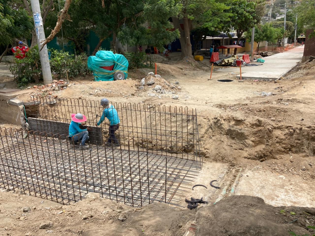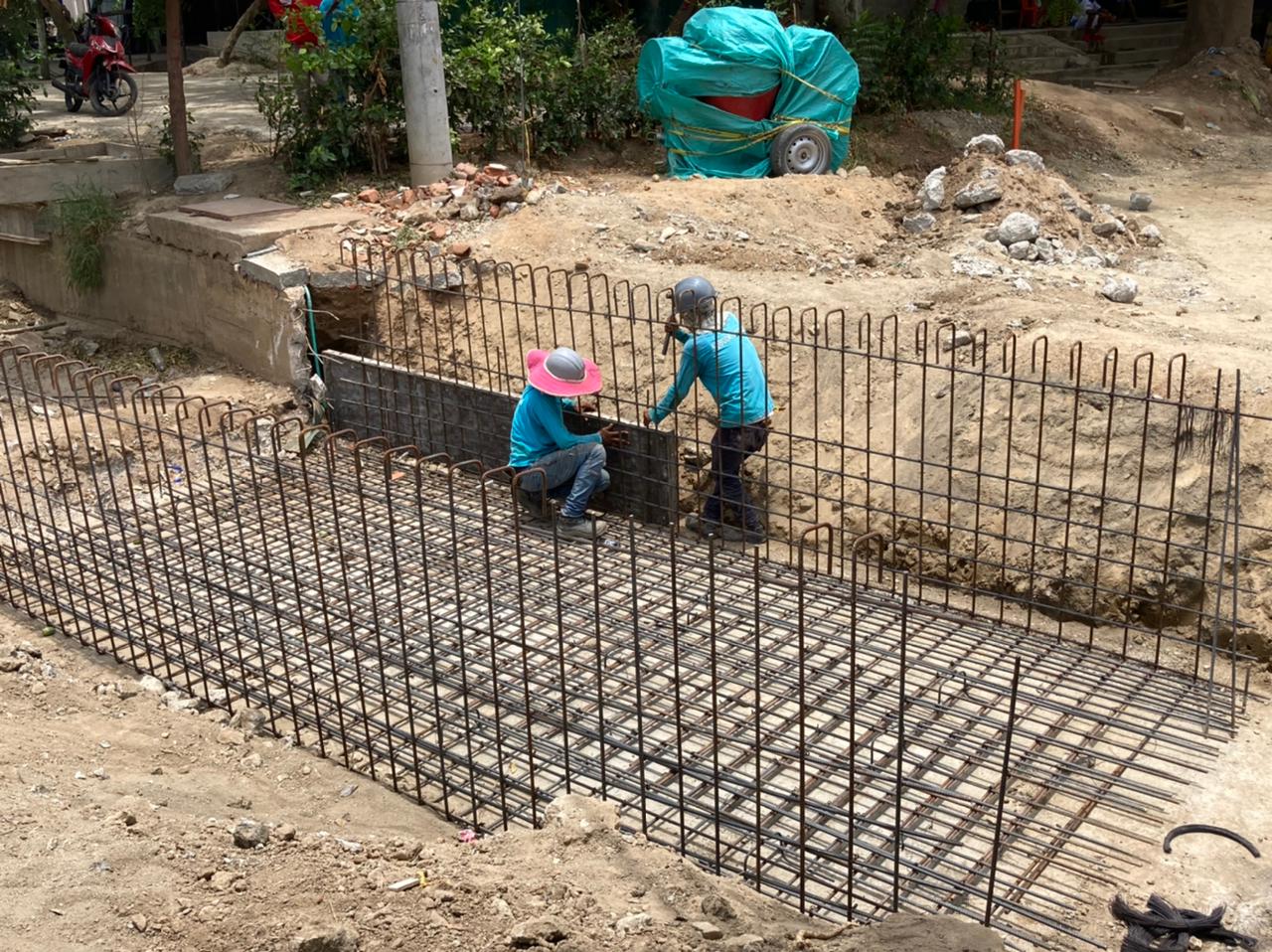 Con el armado de acero de refuerzos para la reconstrucción del box culvert de la calle 35 con carrera 18 del barrio El Pando, la Alcaldía Distrital, a través la Empresa de Desarrollo y Renovación Urbano Sostenible de Santa Marta, EDUS, avanza la ejecución del proyecto en este sector, mejorando sustancialmente la evacuación de aguas lluvias en esta zona.