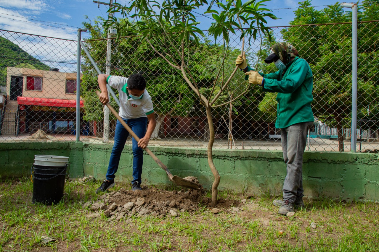 30 árboles de mango, níspero y mamón fueron las especies que la EDUS y los estudiantes de la I.E.D. de El Pando, sembraron en las instalaciones de su centro educativo y varias zonas del barrio.