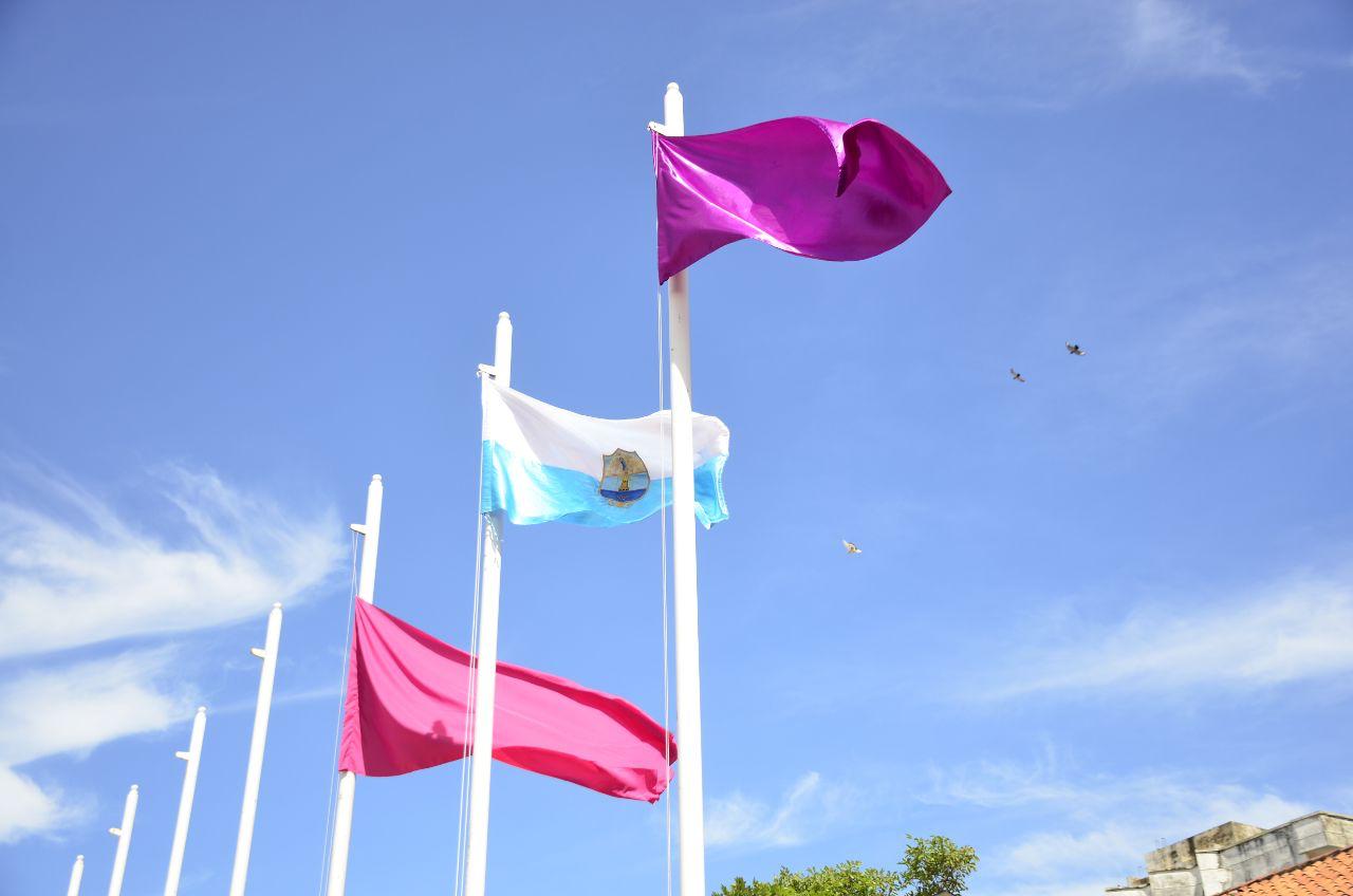 De igual manera, se desarrolló la izada de la bandera de Santa Marta, la bandera púrpura de la Secretaría de la Mujer y la rosada que simboliza la lucha contra el cáncer de seno.