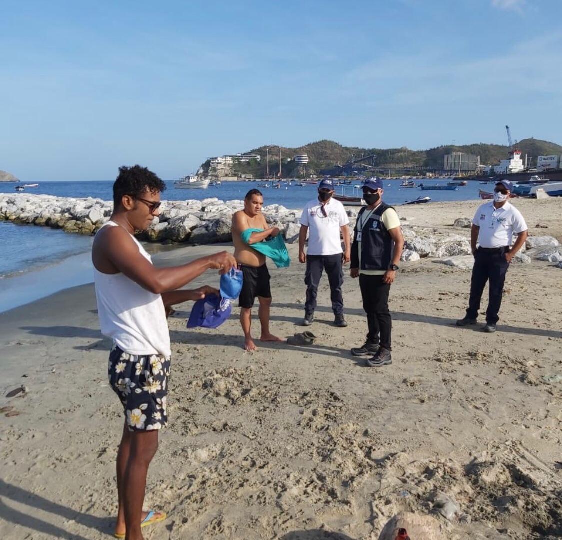 Dentro del recorrido se encontró a 9 bañistas haciendo uso de las playas en completa desobedecía y desacato a la norma impuesta por el gobierno nacional y la Alcaldía Distrital, donde se prohíbe a toda la ciudadanía el uso de estas áreas a causa de la pandemia que se vive por el COVID 19, por lo que también se les realizó una socialización del por qué no pueden hacer uso de estos balnearios.