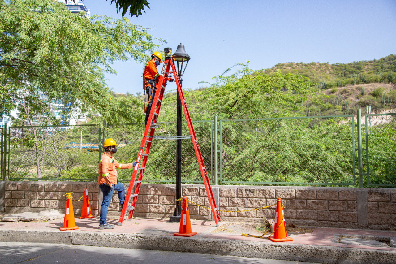 La actividad, que incluyó tareas como la pintura de 22 postes metálicos y la limpieza de luminarias, tuvo por objetivo brindar a samarios y visitantes espacios públicos iluminados y en óptimas condiciones, mejorando así la percepción de seguridad en el marco de la conmemoración de los 496 años de fundación de la ciudad de Santa Marta.