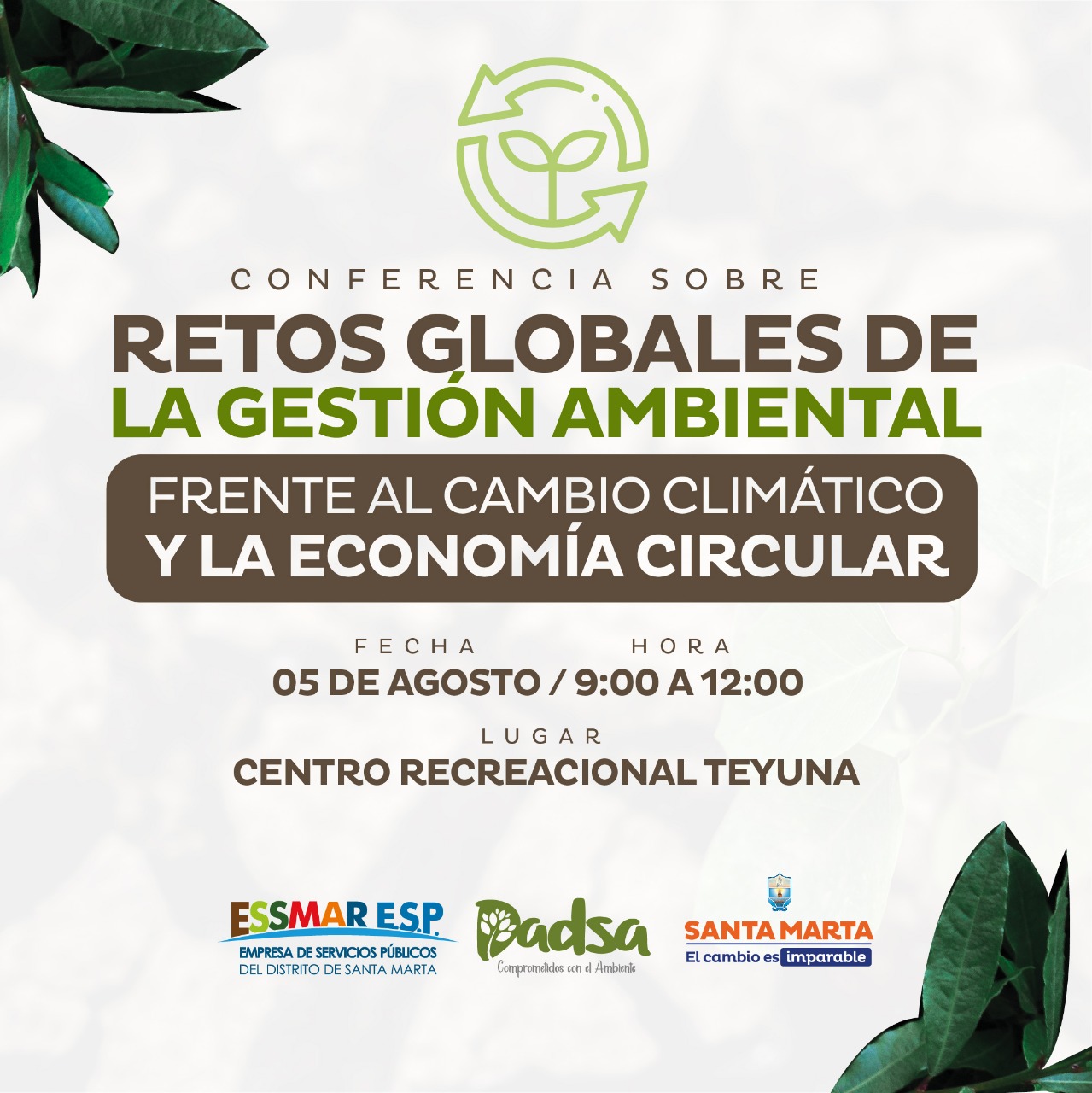 La Alcaldía del Cambio Imparable, a través de la Empresa Distrital de Servicios Públicos – Essmar y la Autoridad Ambiental del Distrito -Dadsa, desarrollarán la conferencia ‘Retos globales de la gestión ambiental frente al cambio climático y la economía circular’.