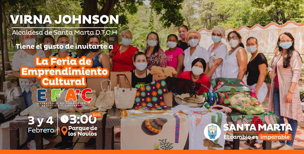 La Feria de Emprendimiento Cultural se suma a la reactivación económica que continúa viviendo la ciudad, recalcando que la misma surge para generar oportunidades de venta a 20 mujeres samarias, amas de casa, emprendedoras y empresarias, quienes recibieron talleres enfocados en temas como: creación y apropiación de marca; producción, financiamiento, presupuesto, manejo de redes y marketing durante tres meses para posteriormente exponer sus productos a todo un público.