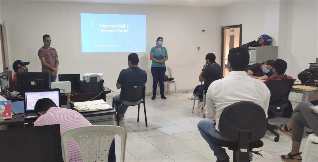 La Secretaría de Promoción Social, Inclusión y Equidad, a través de la oficina para la discapacidad, adelantó una jornada sobre el correcto lenguaje de señas para los funcionarios y contratistas de la EDUS, con el fin de garantizar una comunicación oportuna y asertiva con la población con discapacidad auditiva.