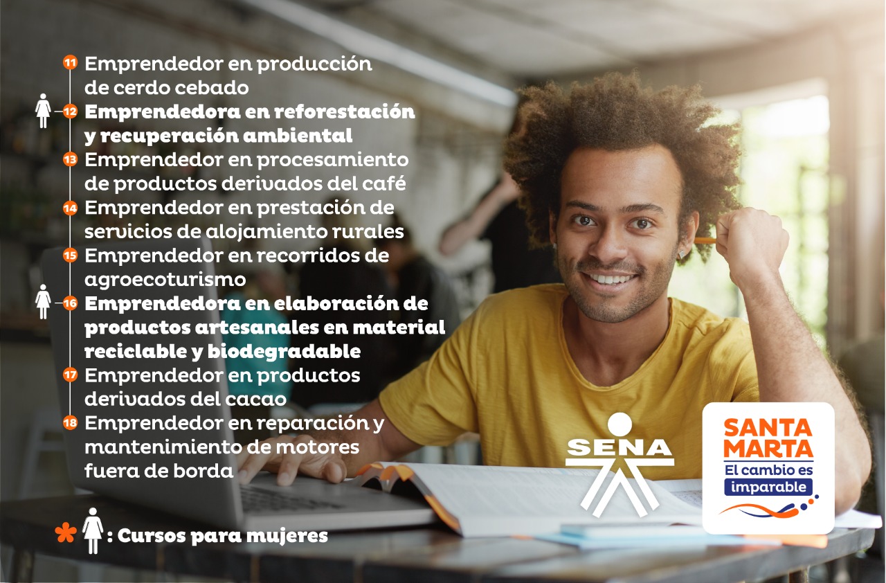 De igual forma, emprendedor en procesamiento de productos derivados del café; emprendedor en prestación de servicios de alojamiento rurales; emprendedor en recorridos de agroecoturismo; emprendedor en productos derivados del cacao; emprendedor en reparación y mantenimiento de motores fuera de borda.