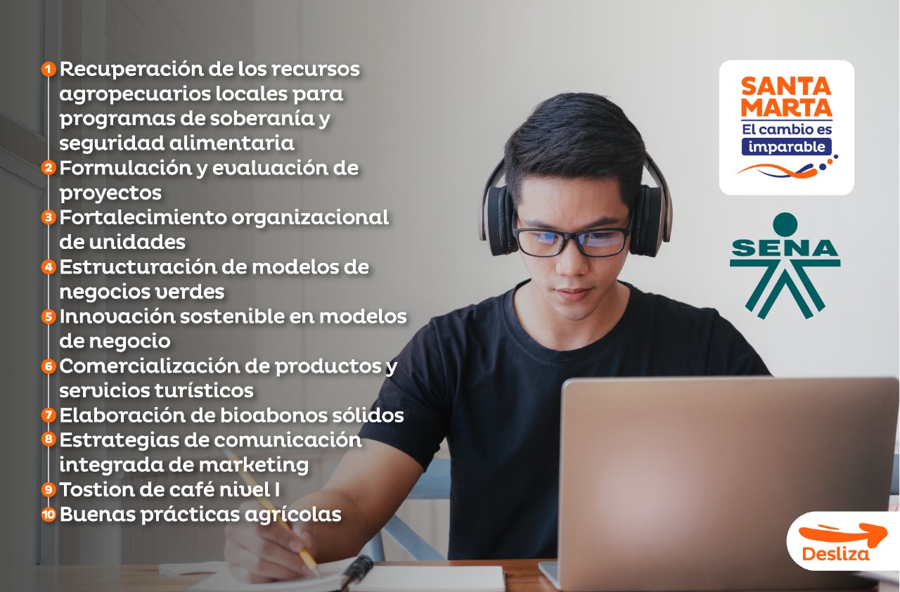 Asimismo, Comercialización de productos y servicios turísticos; elaboración de bioabonos sólidos; estrategias de comunicación integrada de marketing; tostión de café nivel I; buenas prácticas agrícolas; emprendedor en producción de cerdo cebado.