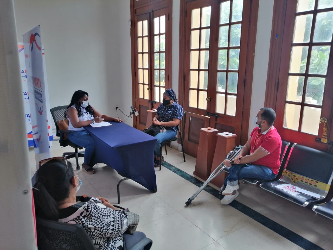 La Alcaldía de Santa Marta, a través de la secretaria de la Mujer, Equidad y Género realizó una reunión con el enlace de discapacidad Distrital Álvaro Iglesias, la intérprete de señas Patricia Ávila, Madre cuidadora Alix Duarte y Luisa Almazo, donde se concertaron algunas líneas de trabajo a favor de la población con discapacidad.